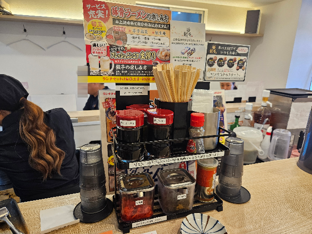 今回は「フレッシュ生搾りにんにく」「紅生姜」「辛子高菜」などの味変を色々試してみました。